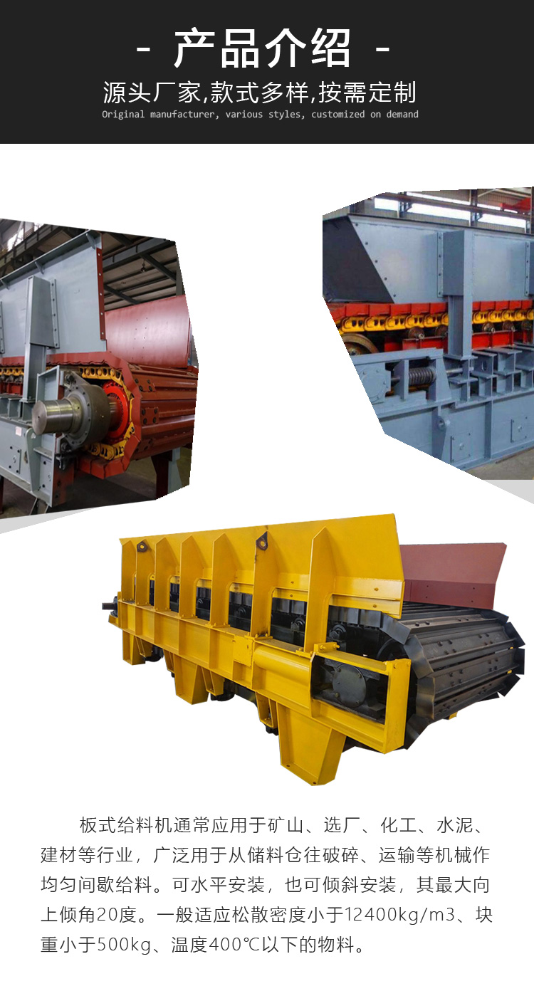 板式給料機(jī)是一種連續(xù)性給料設(shè)備,適用于短距離塊狀物料的輸送,適合礦山、化工、水泥、建材等行業(yè)。