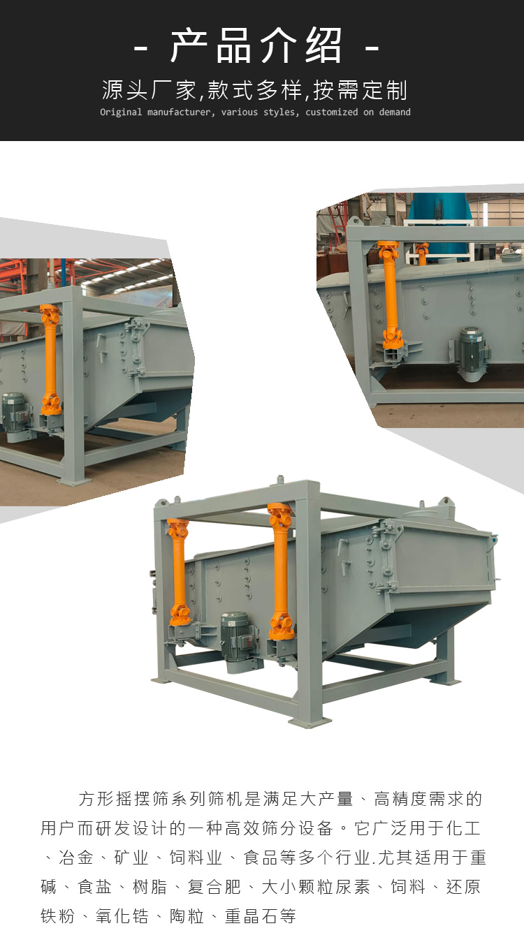 大產(chǎn)量方形搖擺篩是一種新型篩分設(shè)備,它糅合了多種篩分運動方式,可以更好的篩分物料,全封閉結(jié)構(gòu)、環(huán)保又高效,多層篩框設(shè)計,大產(chǎn)量實力碾壓。