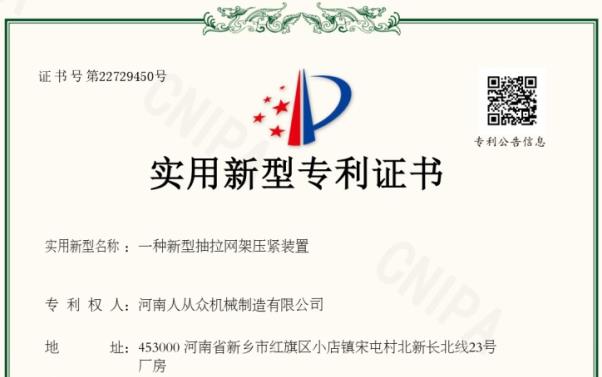河南人從眾機械制造有限公司新型抽拉網架壓緊裝置專利技術