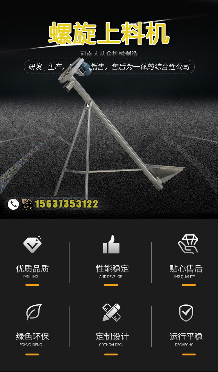 螺旋上料機一般常用于輸送顆粒狀粉末材料。適用于化工、食品、建材、包裝等行業對喂料要求較高的設備。它具有速度快、精度高、應用廣的特點。